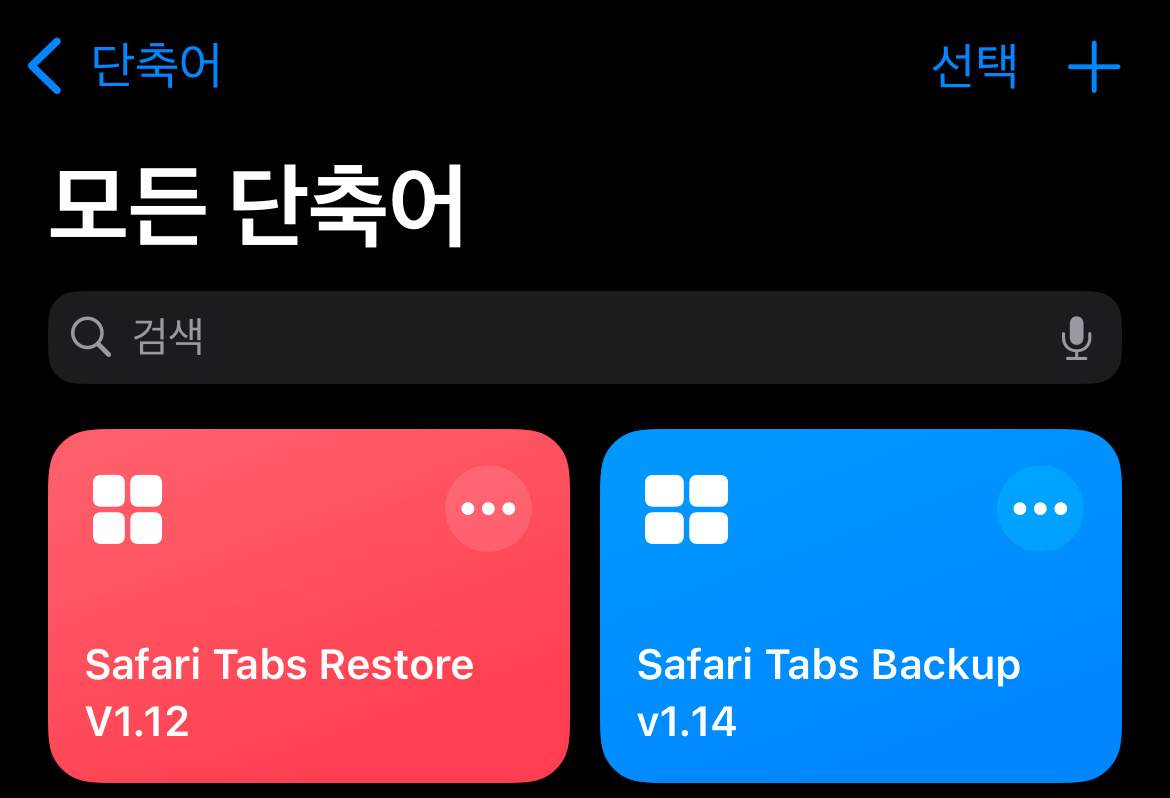 1. 위 링크를 통해 ‘Safari Tabs Restore’ 단축어를 설치합니다.
